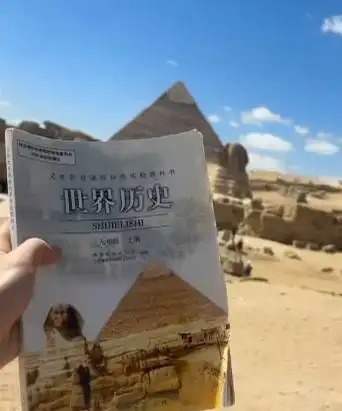近日,一场特别的“课本接力”在海外景点悄然走红。有网友分享,在埃及金字塔对面的石墩内,发现中国游客留下的九年级上册世界历史课本;也有网友在英国大本钟对面的路灯下,找到一本英语必修课本。翻开课本,扉页与内页密密麻麻写满了游客的留言,成为跨越国界的独特风景。