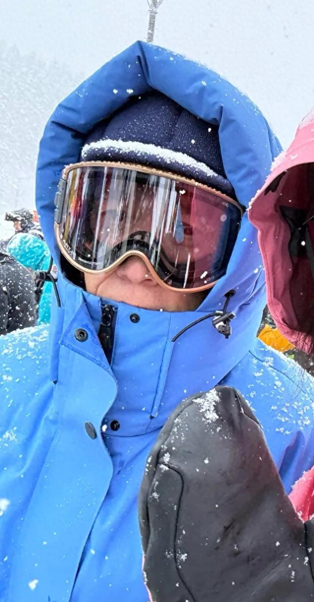 刘嘉玲和梁朝伟一起排队滑雪,大雪纷飞里,两人的背影看着很般配。
