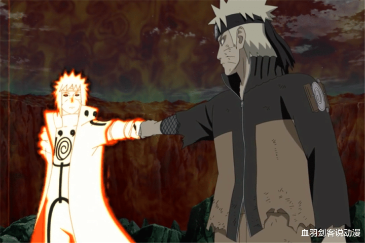 面对六道带土的数个尾兽玉,二代火影千手扉间和四代火影波风水门都没有想到应对办法,漩涡鸣人却一下就想到了通过查克拉的间接连接可以让飞雷神之术救下所有人!而在这一碰拳的同时,波风水门也感知到了儿子的内心,这就是父子同心的力量!