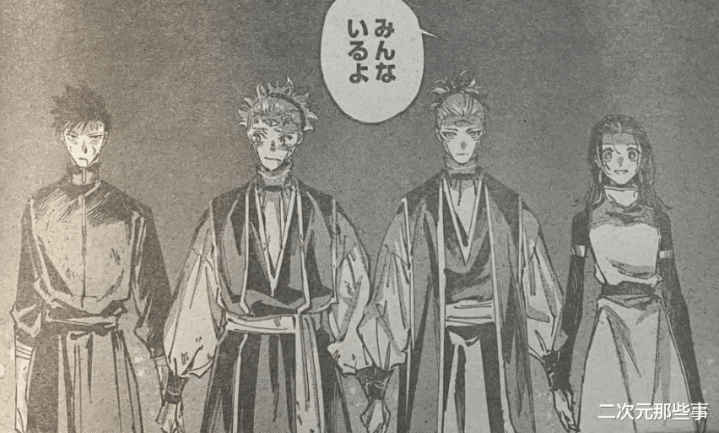 随后,马鲁一人飞向高空开始进行调和,不过此时的他还是开始犹豫了,关键时候,一个人紧紧握住了马鲁的手,这人正是马鲁的双胞胎兄弟克罗斯。然后乙骨真剑、乙骨忧花兄妹也出现了,四个人手拉着手,共同进行调和仪式。